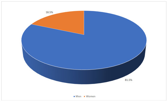 Based on the first part of the completed survey, detailed information was determined on the respondents who participated in it. The study involved 1080 people, consisting of 881 men and 199 women. The detailed distribution of respondents is presented in Figure 3.