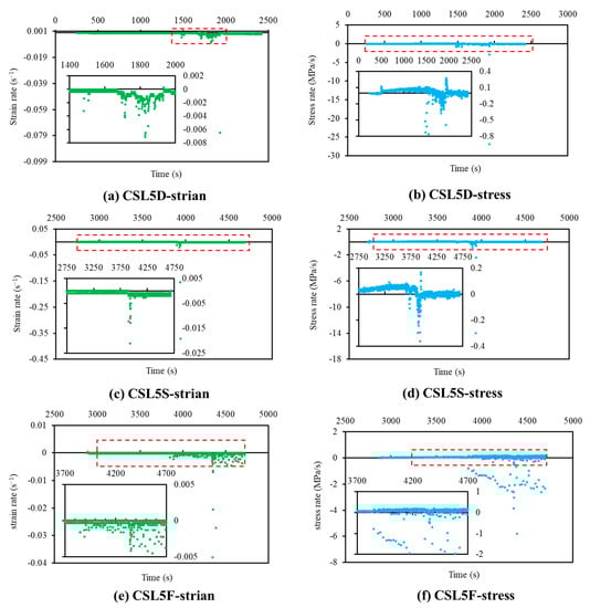 4.1. Analysis of Strain Variation Rate and Stress Variation Rate of Coal