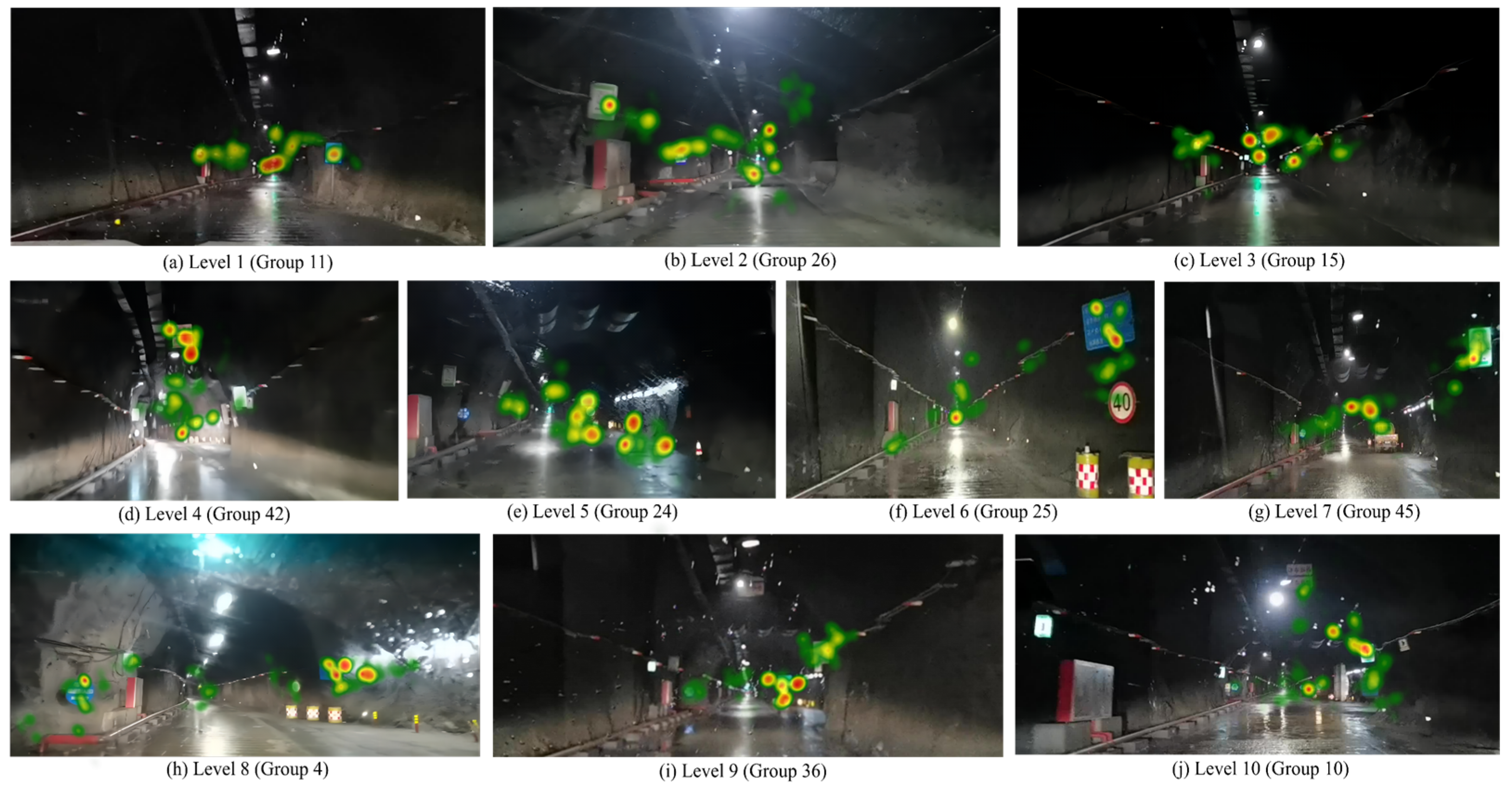 - Zeng, Q.; Chen, Y.; Zheng, X.; Zhang, M.; Li, D.; Hu, Q. Exploring the Visual Attention Mechanism of Long-Distance Driving in an Underground Construction Cavern: Eye-Tracking and Simulated Driving. Sustainability 2023, 15, 9140. [Google Scholar] [CrossRef]