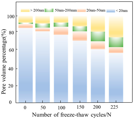 4.3. Pore and Microstructure Change of Lining Concrete under Freeze–Thaw Cycle