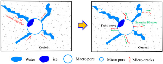 4. Analysis of Cracking Failure Mechanism of Lining Structure under the Action of Freeze–Thaw Cycle