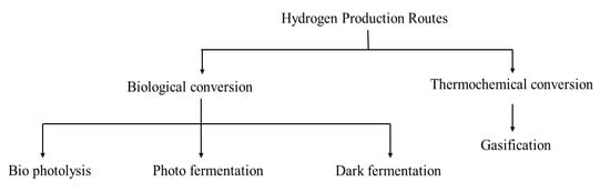 The various routes of biohydrogen production are illustrated in Figure 4.