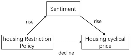 Subjective sentiment can enforce an invisible impact on asset prices. For example, investors’ emotions can change their decisions regarding buying or selling, which further affects stock prices [25,27,28] and investors’ next-step behaviors [29,30,31,32,33]. The real estate market has more individual consumers, who are more likely to generate casual restrictions on transactions and are also more susceptible to immediately perceived emotions compared to collective buyers [32,34,35,36]. It was suggested that positive sentiments can significantly increase real estate prices. Consumer sentiment occupies a dominant position in the determination of short-term prices, and sentiment has a greater impact in regions with more developed economic levels [37]. When mentioning gains from housing sales and rentals, higher positive sentiment is often accompanied by lower housing gains [13,33,38,39]. Researchers engaging in studies on emotions mainly focus on their relationship with real estate prices. For them, the most interesting topic is how emotions affect real estate prices under the short-term regulation, of real estate is still relatively rare. The government wants to use short-term regulation measures to stabilize market prices, which are sensitive to consumer sentiments.