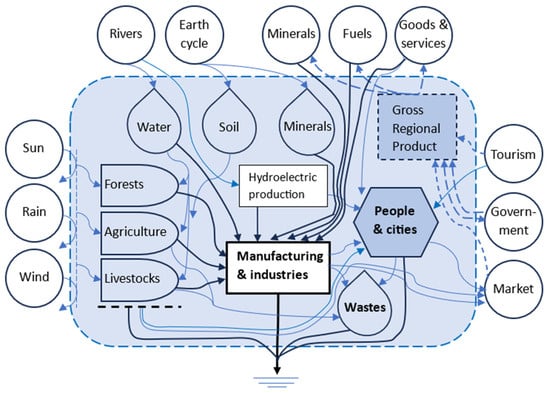 Different types of flows in the metabolic pattern of the economy. Modified from [44] (p. 42).