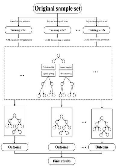 - The decision trees are generated using the classification and regression tree (CART) algorithm, with each tree growing freely without pruning.
