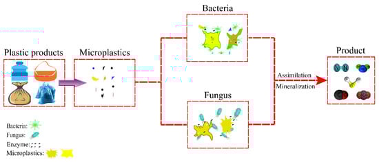 Biodegradation technology has the characteristics of high efficiency, being green, low cost, and sustainable development, and is considered to be the most likely technology to be applied to solve the pollution of MPs in the future. Although MPs can persist in the environment and have a certain resistance to degradation due to their chemical stability, studies have shown that some bacteria and fungi can participate in the degradation of MPs [82]. In addition, animals also have a certain degradation effect on MPs.