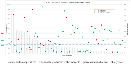 - The overall evaluation of the companies is distributed mainly in the lower part of the model, suggesting that the sector has to improve its sustainability performance. However, it must be noted that this result depends on the adopted scoring model and on how the sector communicates its sustainability efforts (see below). The overall evaluation indicates that the sustainability performance does not depend on the size of the company; moreover, cooperatives are the best performing typology.