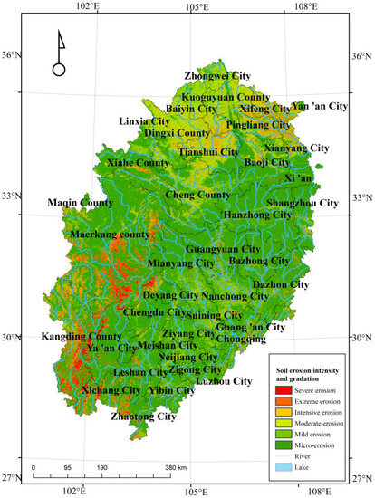 - Cheng, L.; Yang, Q.K.; Xie, H.X.; Wang, C.M.; Liu, W.L. GIS and CSLE Based Quantitative Assessment of Soil Erosion in Shaanxi, China. J. Soil Water Conserv. 2009, 23, 61–66. [Google Scholar] [CrossRef]
