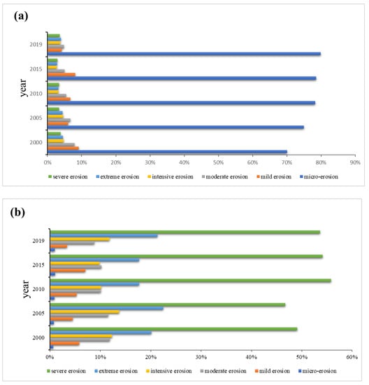3.1. Spatial Distribution Pattern of Soil Erosion from 2000 to 2019