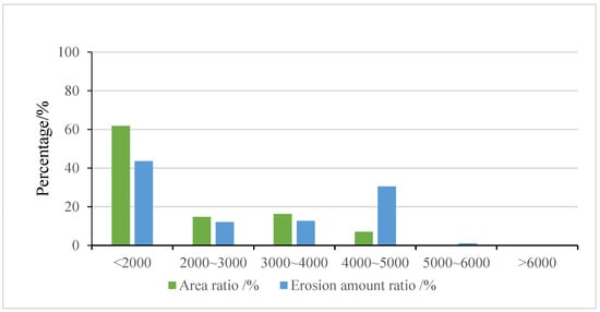 | Altitude/m | Erosion Area/km2 | Erosion Modulus/ (t·(km2·a) −1) | Total Erosion/ (10,000 t· a−1) | Area Ratio/% | Erosion Amount Ratio/% |