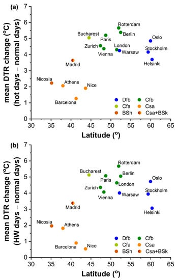APA StyleKatavoutas, G., Founda, D., Varotsos, K. V., & Giannakopoulos, C. (2023). Diurnal Temperature Range and Its Response to Heat Waves in 16 European Cities—Current and Future Trends. Sustainability, 15(17), 12715. https://doi.org/10.3390/su151712715