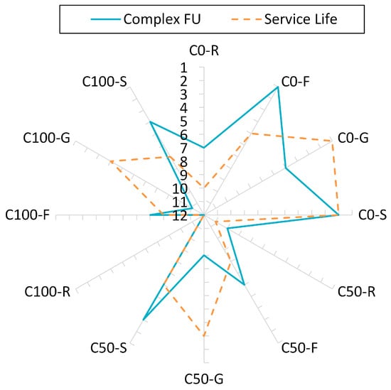 | WASPAS | EDAS | TOPSIS | Complex FU | Service Life | |