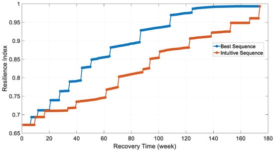 Resilience indexes for two repair sequences.