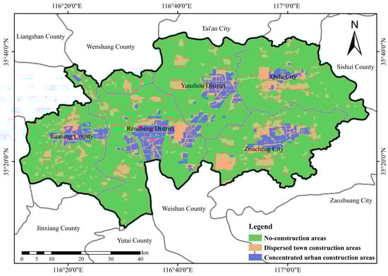 | Land use | Non-construction areas | Dispersed town construction areas | Concentrated urban construction areas | |