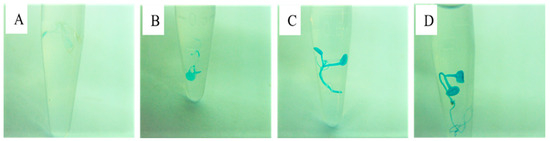 In response to various PEG concentrations, (A) control, (B) 5%, (C) 20%, and (D) 30% on MS for 24 h, OsPPOGUS expression was found in transgenic A. thaliana T2 plants.