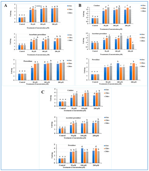 Currently, three activities were performed in each treatment, e.g., catalase (CAT), ascorbate peroxidase (APX), and peroxidase (POD).