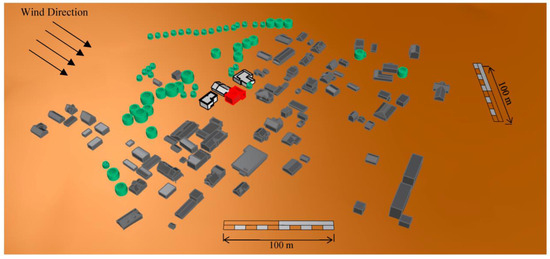 - Nozu, T.; Tamura, T. LES of turbulent wind and gas dispersion in a city. J. Wind Eng. Ind. Aerodyn. 2012, 104, 492–499. [Google Scholar] [CrossRef]