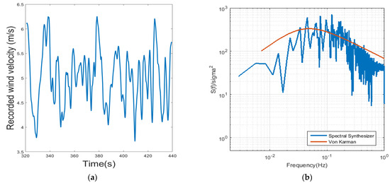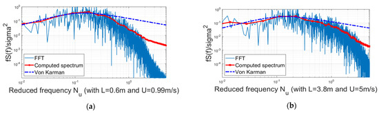 To study the effectiveness of the spectral synthesizer, the power spectrum of generated turbulence is calculated and validated with the von Karman wind spectra. The streamwise component of the von Karman formulation is described as follows [10,21]: