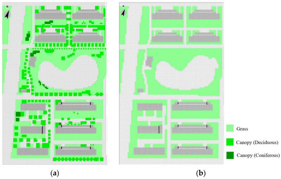 (a) The original case with vegetation canopy; (b) the designed case without vegetation canopy.