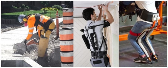 - Howard, J.; Murashov, V.V.; Lowe, B.D.; Lu, M. Industrial exoskeletons: Need for intervention effectiveness research. Am. J. Ind. Med. 2019, 63, 201–208. [Google Scholar] [CrossRef]