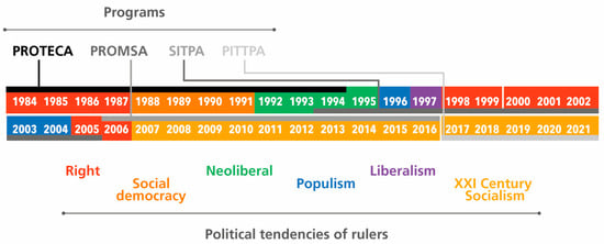 Finally, we have the PITPPA project (2017–2021), which began under guidelines similar to those of its predecessor and was mainly due to the ideological stance of Ecuador’s president Rafael Correa [82,83]. However, throughout his administration, various factors affected the direction of the project. Among them, the marked distancing from the philosophy of Socialism for the 21st Century [84,85,86] and global restrictions due to the COVID 19 pandemic stand out [87]. Evaluations of the project are yet to be published.