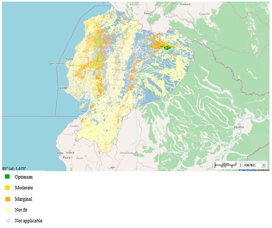 Finally, care of the soil resource is an urgent matter. Censuses carried out throughout Ecuador’s history demonstrate an increase in the population, as evidenced in Figure 6. This phenomenon could lead to shortages of food and energy [3] and has produced the extension of the agricultural frontier, causing deforestation at an approximate compound annual rate of 3.3% [13]. Similarly, in a directly proportional relationship, a population increase (Figure 6) produces an increase in urban settlement. This situation leads to land use transformations and pressure on natural resources [139]. As Stini [140] notes, Ecuador has a tremendous range of biodiversity. In this sense, Jimenez et al. [141] suggest that understanding local knowledge and soil management practices contributes to maintaining sustainable ecosystems. Marraccini et al. [142] maintain that agronomic diversity is a strategy that reduces the impacts on systems. Thus, assessing soil suitability for crops provides information for land use choices. This is an important matter, as the potential for soil loss is great in 47.9% of continental Ecuador [143], especially in the highlands [144]. Soil maps are consistent with the conventional methods used to evaluate soil and climate suitability according to Jimenez et al. [141], but the fact that technical land use maps are seldom utilised may be due to cultural issues.