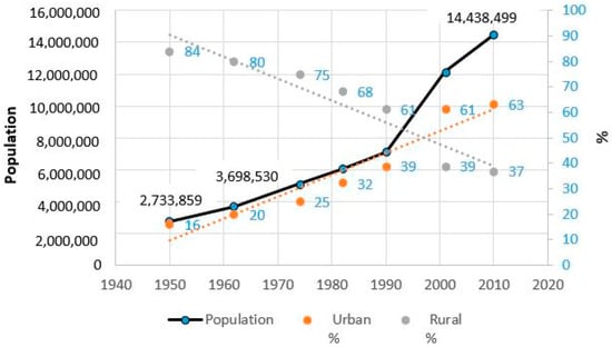 The censuses carried out throughout Ecuador’s history illustrate population increase, as evidenced in Figure 6. Similarly, the increase in population is directly proportional to the increase in urban settlement.