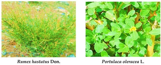 All the collected WEPs were arranged family-wise alphabetically, as shown in Table 1. The ethnobotanical data collected regarding WEPs show that these 10 plants belong to 8 families and 10 genera. The two wild edible plants belong each to the family Fabaceae and Polygonaceae, whereas the families Amaranthaceae, Brassicaceae, Chenopodiaceae, Malvaceae, Oxalidaceae, and Portulaceae family have one species each. All the plants collected were herbs based on their habit. The parts used as a portion of food were mainly leaves and young shoots. In most cases, the WEPs collected were used by the locals as vegetables as shown in Figure 2.