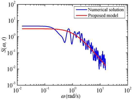 For the purpose of verifying the correctness of the model above in calculating the fluctuating wind speed spectra at the moving point under the non-stationary wind field, the numerical solution of the spectra is compared with the corresponding calculated values obtained by Equations (39)–(43), as shown in Figure 19. It is seen that the calculated values of the model match well with the corresponding numerical solution, supporting the high calculation accuracy of the model by Equations (39)–(43).