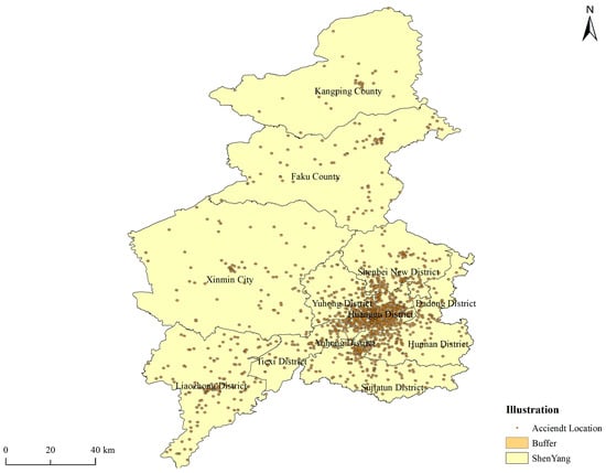 This research is conducted based on the traffic accident data from 2018 to 2020 in Shenyang, Liaoning Province, China. The accident characteristics data reported by the traffic police only pointed out the specific address of each accident, we used technical means to convert the text into latitude and longitude under the WGS84 coordinate system.