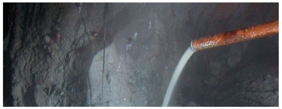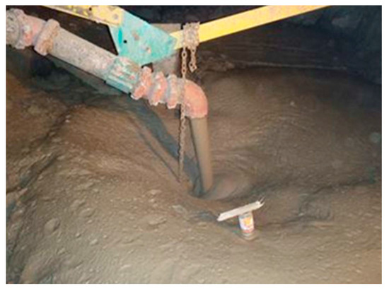 The most common forms of underground mine fill with mine tailings include (i) hydraulic fill, (ii) cemented hydraulic fill, and (iii) cemented paste backfill. Each type of backfill has its own risks that need to be addressed during underground mine design, planning, and operations [56]. Of all the threats posed by backfill to underground mining, the biggest threat depends on the water content in the backfill [31]. Figure 8 shows an example of hydraulic underground mine backfilling with mine tailings applied in Peru.
