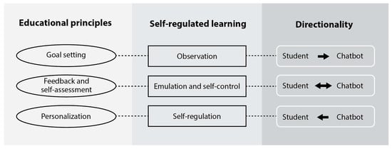 Additionally, goals can function as benchmarks by which learners assess the efficacy of their learning endeavors. When students possess the capacity to monitor their progress toward these goals, they are more likely to sustain their motivation and active involvement in the learning process [61]. Within the context of AI chatbot interaction, consider a scenario where a student instructs a chatbot to execute certain actions, such as synthesizing a given set of information. Subsequently, the chatbot provides the requested synthesis, allowing students to evaluate its conformity with their expectations and the learning context. Within Zimmerman’s framework of Self-Regulated Learning, this process aligns with the stages of emulation and self-control. Once a student prompts the chatbot for a response, they continuously monitor and self-assess its quality, subsequently re-prompting the chatbot for further actions. This bidirectional interaction transpires within the stages of simulation and self-control, as students actively participate in a cycle of prompts, monitoring and adjustments, and subsequent re-prompts, persisting until they attain a satisfactory outcome. Yet we have to acknowledge that the interaction assumes student autonomy, in which students keep prompting the chatbot and relying on the chatbot’s output. A more sophisticated way of student–chatbot interaction is bidirectional, where a chatbot is capable of reverse prompting, a concept which we will dive into deeper in our next section.