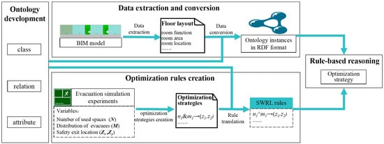 - Rule-based reasoning. Finally, based on SWRL rules and ontology instances, the inference of the optimization strategies for exit locations could be realized. The inference results will be displayed in the ontology in the form of instance attributes.
