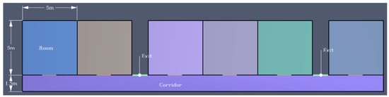 - Wang, J.; Zhu, W.; Yin, M.; Zhong, S. Emergency Evacuation from a Teaching Building Based on The Social Force Model. In Proceedings of the 11th IEEE International Conference on Electronics Information and Emergency Communication (ICEIEC), BeiJing, China, 18–20 June 2021. [Google Scholar]