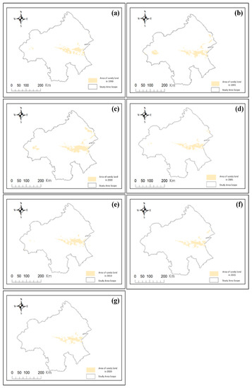 5.1. Analysis of the Spatial and Temporal Trends of the Sandy Land Areas in the Study Region