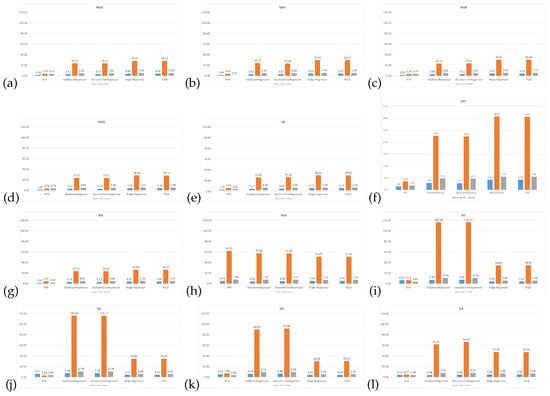 Errors comparison of ML Models (a) NDVI, (b) SAVI, (c) MSR, (d) NDSI, (e) SR, (f) DVI, (g) RSI, (h) VSSI, (i) SI1, (j) SI2, (k) SI3, (l) SI4.