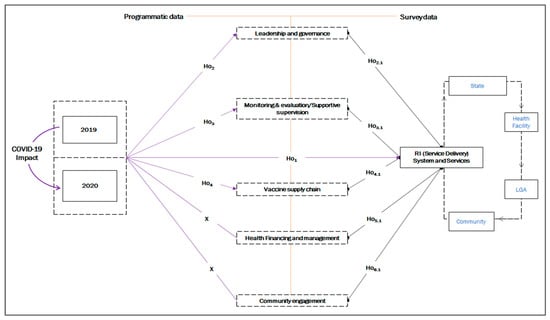 Based on the conceptual framework in Figure 1, we hypothesized that, transitioning from 2019 to 2020 (the peak year of the pandemic in terms of the number of cases and mortality), RI systems and services were impacted. However, the impact was felt through various key aspects of the program. Therefore, we hypothesized the following.