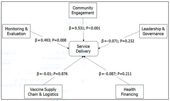 Providing vaccinations and improving coverage are the fundamental concepts of service delivery (SD) in routine immunization (RI) programs [,]. A COVID-19 study conducted in 170 countries and territories found that disrupted RI sessions occurred in 17 out of 30 World Health Organization (WHO) member states in Africa (of which there are 47 in total). There was a partial suspension of fixed post-immunization services in 2 countries and partial or complete suspension of outreach services in 17 countries []. The inability to conduct immunization practices during the COVID-19 pandemic was the greatest threat to the gains regarding vaccine-preventable diseases [,,,]. According to the GAVI, WHO, and UNICEF, at least 80 million children are at risk of diphtheria, measles, and polio because of the disruption in routine vaccination efforts caused by the COVID-19 pandemic [,].