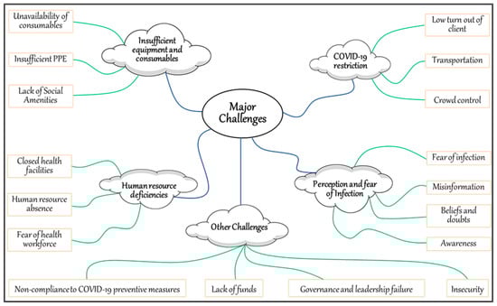 However, because of the COVID-19 pandemic, these achievements across all program themes were threatened. Major implications of these restrictive measures and the overwhelming increase in COVID-19 cases included disruption in the provision of essential healthcare services [,,] and extra burden on frontline healthcare workers, diagnostic capacities, and management of facilities []. Beyond these disruptions, the pandemic also revealed weaknesses in the healthcare systems and challenged programmatic assumptions.