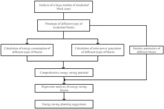Step 4: The correlations between the influences of morphological parameters of different types of neighborhoods on the building energy consumption and solar energy utilization potential in the neighborhood were calculated and analyzed, and a combined assessment of different types of residential neighborhood cases was carried out using the comprehensive energy-saving potential.