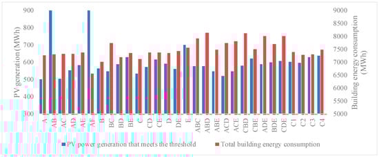 Comparison of Photovoltaic Power Generation Meeting the Threshold and Building Energy Consumption Self-sufficiency Ratios.