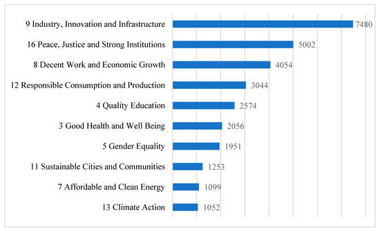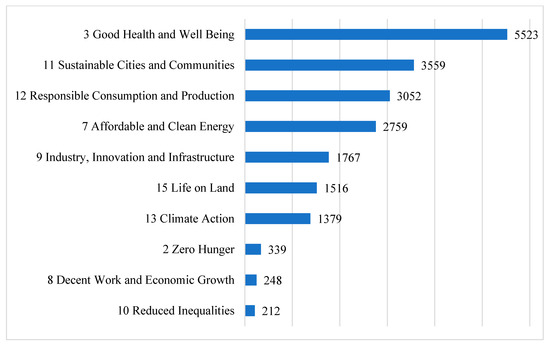 - Sianes, A.; Vega-Muñoz, A.; Tirado-Valencia, P.; Ariza-Montes, A. Impact of the Sustainable Development Goals on the academic research agenda. A scientometric analysis. PLoS ONE 2022, 17, e0265409. [Google Scholar] [CrossRef]