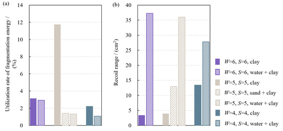 Figure 11. Comparison of fragmentation energy utilization rate and recoil range of three stemming methods; (a) fragmentation energy utilization rate; (b) recoil range.
