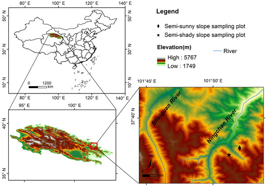 - Zhu, M.; Feng, Q.; Qin, Y.; Cao, J.; Li, H.; Zhao, Y. Soil organic carbon as functions of slope aspects and soil depths in a semiarid alpine region of Northwest China. Catena 2017, 152, 94–102. [Google Scholar] [CrossRef]