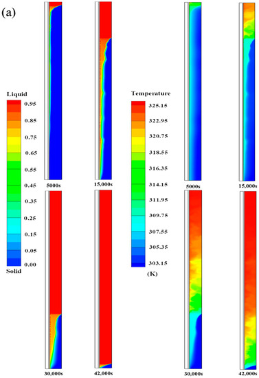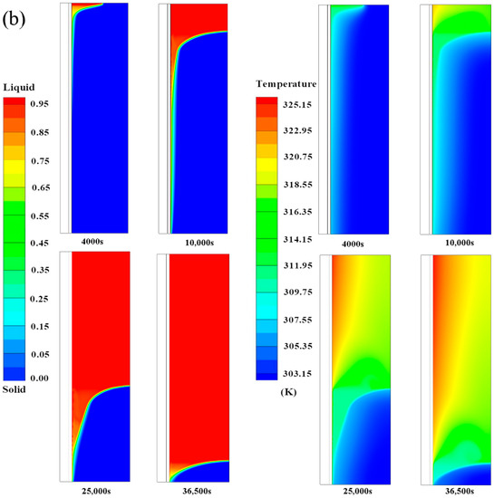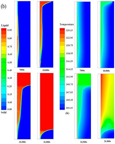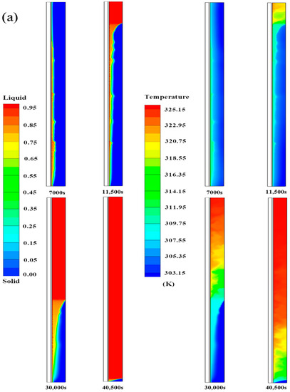 3.1.1. Evolution of Solid–Liquid Interface and Isotherm of PCM Injected at the Top of HTF