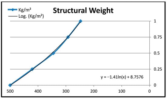 The correlation between the utility score and structural weight is shown in Figure 10. We see a diminishing tendency in structural weight as the utility score increases from 0 to 1. This suggests that the two variables are inversely related. Additionally, by contrasting the options, we can see that the differences between each successive structural weight value decrease incrementally as the utility score rises. For example, the difference between the structural weight values of options 1 and 2 is 78.75, whereas the difference between the structural weight values of options 3 and 4 is only 44.75. This suggests that as the utility score gets closer to its maximum value, the rate of weight reduction becomes less relevant.