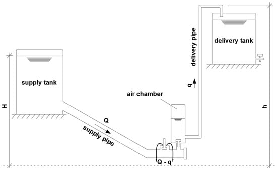 Invented by Whitehust in 1772, and subsequently perfected by Montgolfier with the introduction of a pulse valve, the hydraulic ram pump has been the subject of studies conducted by numerous researchers from all over the world [1,2,3]. This research aims at defining a rational theory to analytically describe the behaviour of the pump in order to improve its performance through the optimal sizing of its main components. Among the numerous studies in the literature, some are dedicated to the analytical description of the pump’s behaviour, described with detailed and complex theory or simplified theory [4,5].