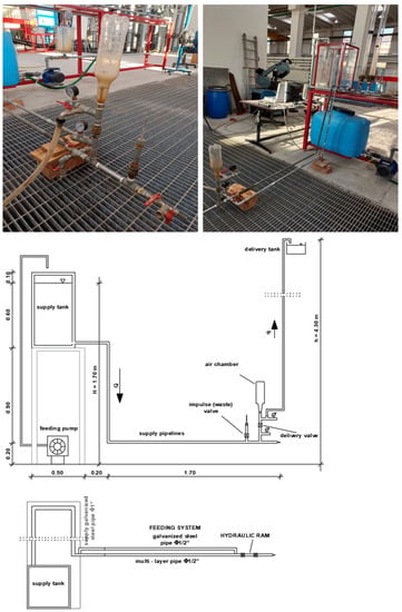 - Viccione, G.; Immediata, N.; Cava, R.; Piantedosi, M. A preliminary laboratory investigation of a hydraulic ram pump. In Proceedings of the EWaS3 2018, 3rd EWaS International Conference on “Insights on the Water-Energy-Food Nexus”, Lefkada Island, Greece, 27–30 June 2018; Volume 2, p. 687. [Google Scholar] [CrossRef]