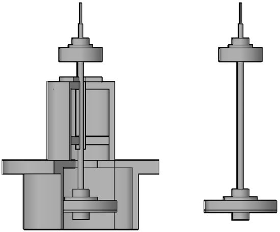 To simulate the behaviour of the waste valve, a simplified geometry is considered, using a two-dimensional representation of the valve and schematizing the piston inside it as a rectangle of size 2 × 16 mm. The overset mesh technique is adopted for the definition of the two geometries and related meshes: one relative to the domain of the fluid within which the movement takes place, i.e., the pump body (Figure 5), and the other representing the moving organ, i.e., the piston inside it (for computational simplicity, represented by a rectangle).