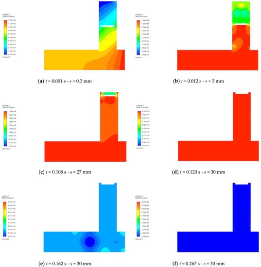 A series of frames extrapolated from the simulation, representing the trend of the pressure inside the waste valve, is reported in Figure 10.
